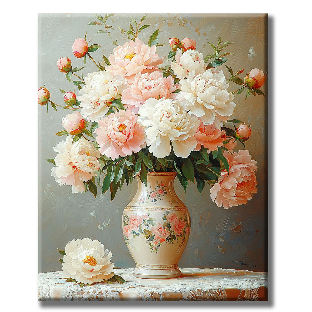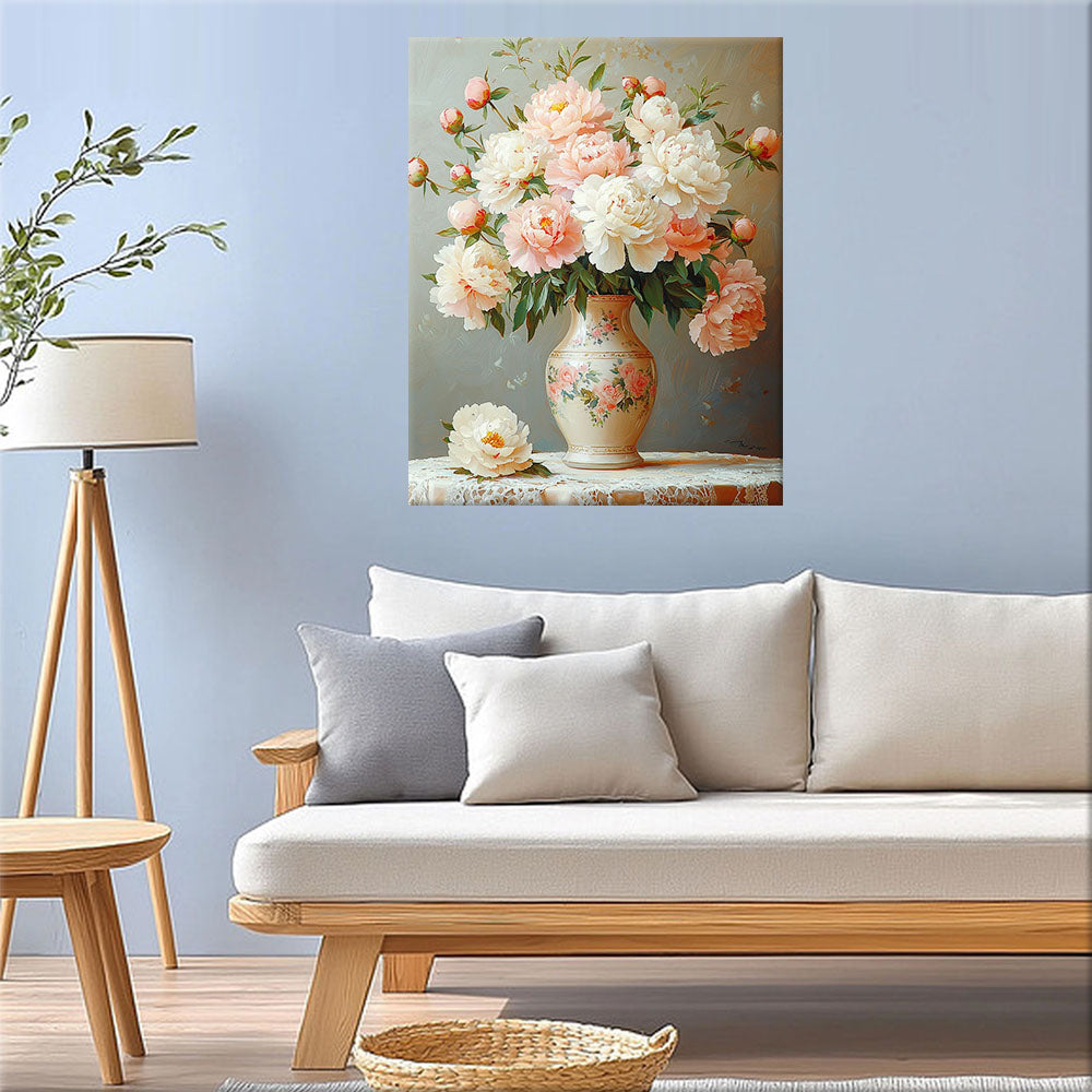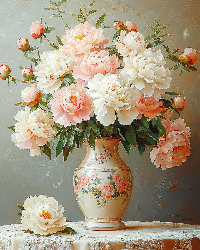 Pastellfarbene Blüten im Gefäß- Malen nach Zahlen