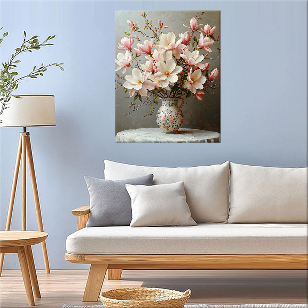 Pastellrosa Magnolienblüten- Malen nach Zahlen