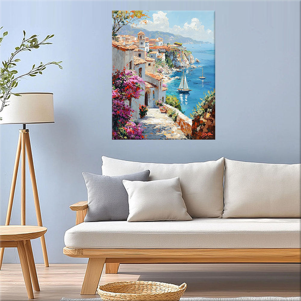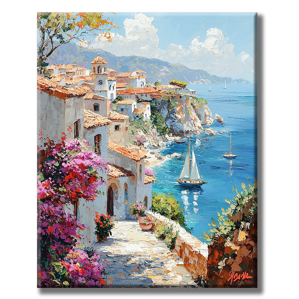 Küstenidylle mit Segelbooten- Malen nach Zahlen