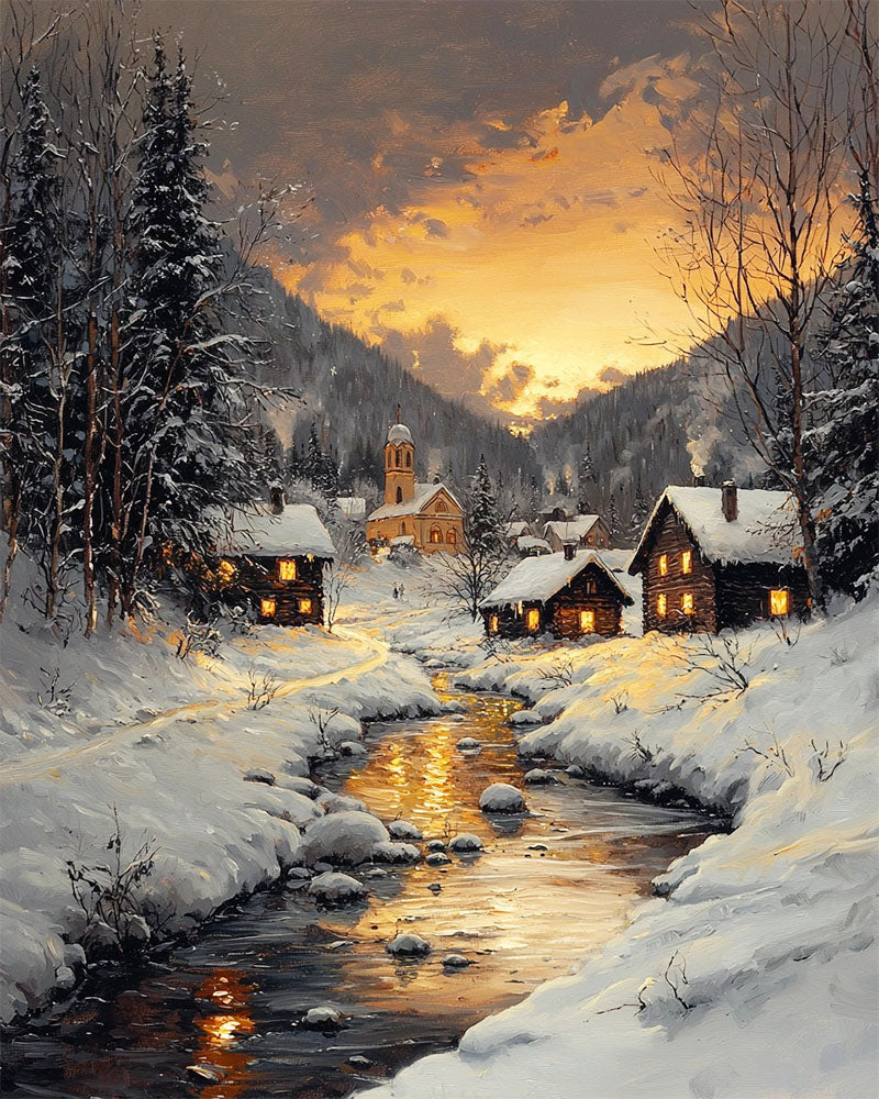 Schneeortsonnenaufgang- Malen nach Zahlen