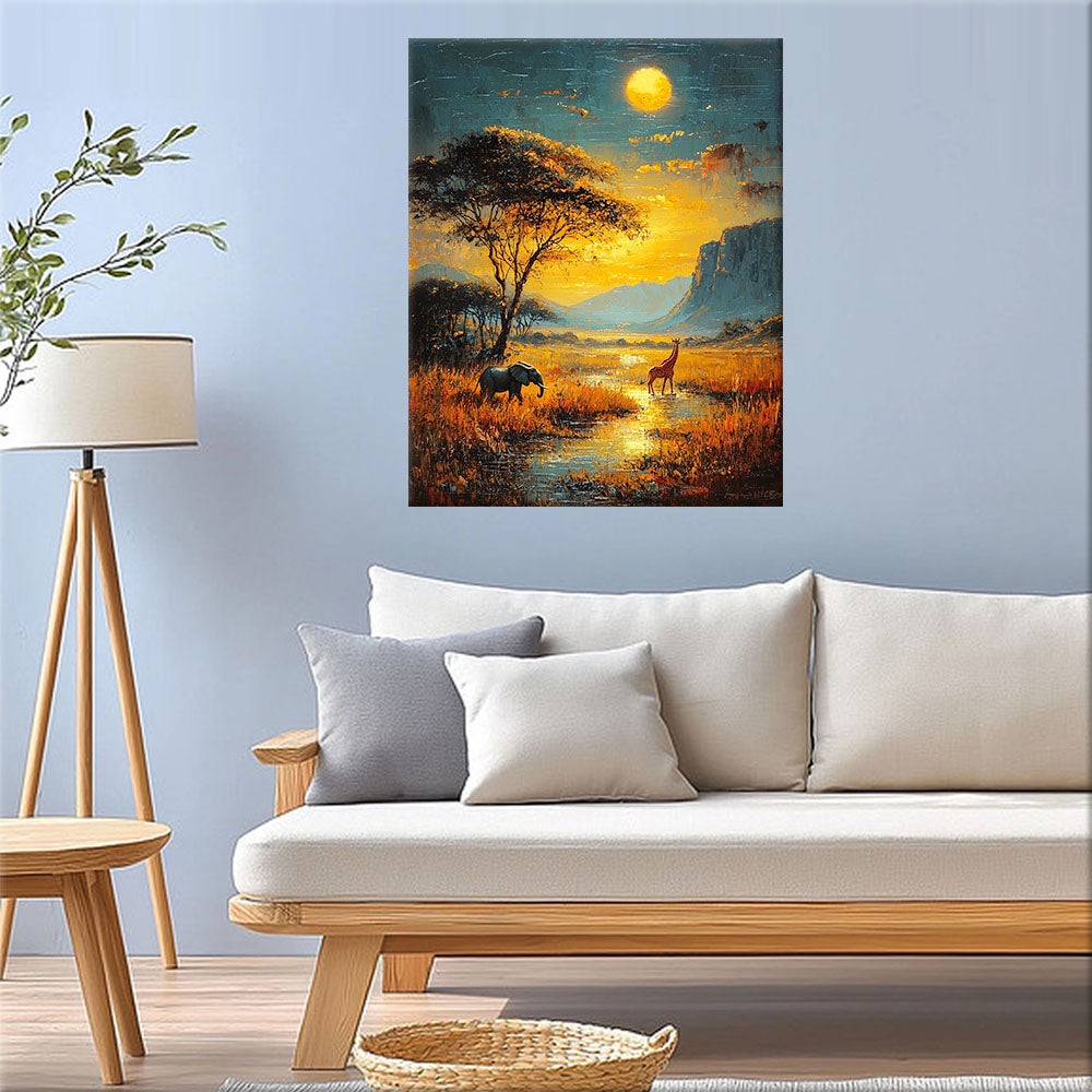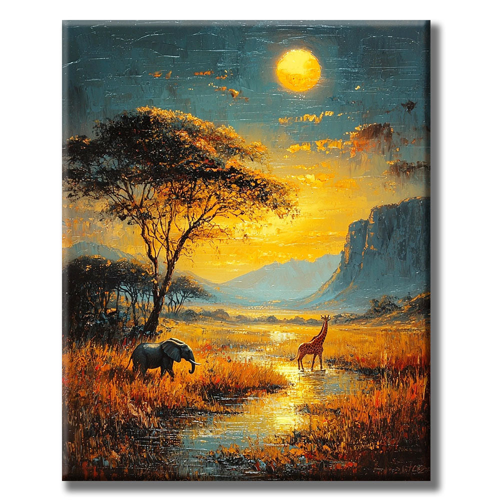 Sonnenuntergang in der Savanne- Malen nach Zahlen