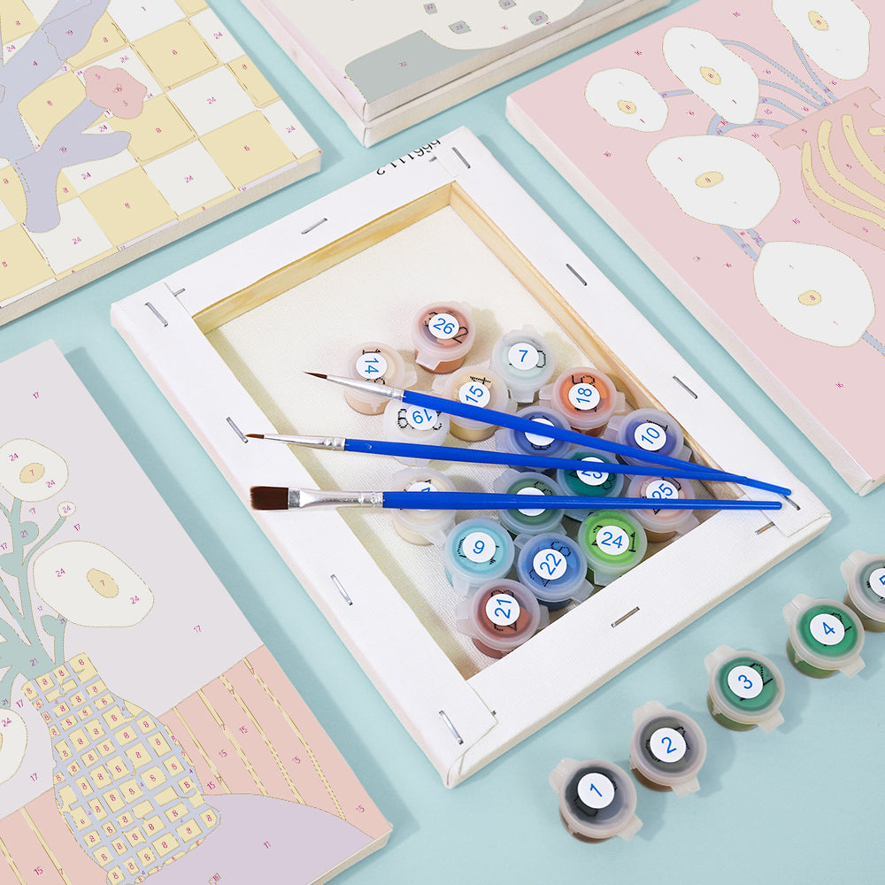 Bereite dein Malen-nach-Zahlen-Set für ein wunderbares Mal-Erlebnis vor.
