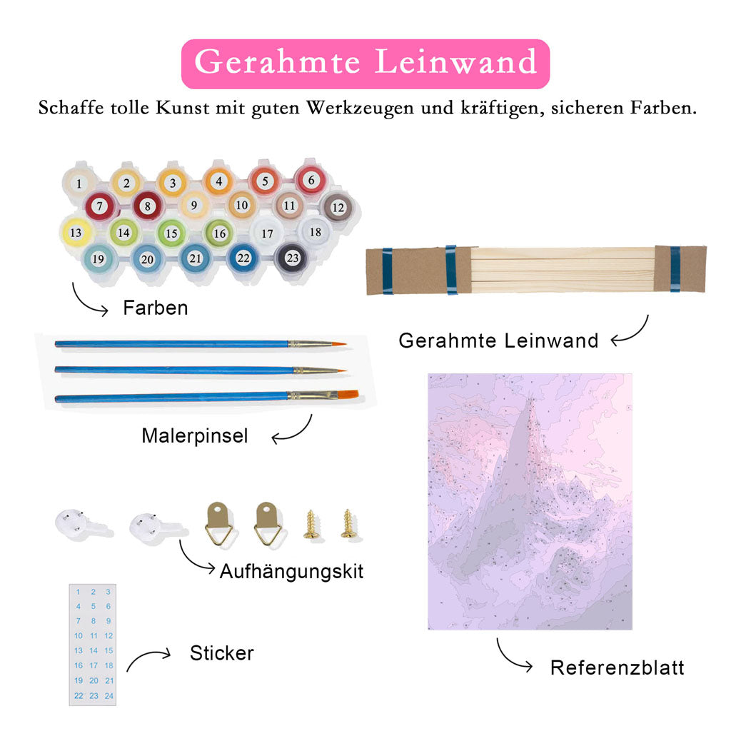 • DIY-Malen nach Zahlen: Dieses Set enthält alles, was Sie benötigen, um ein professionell aussehendes Kunstwerk zu schaffen, indem Sie die nummerierten Bereiche mit Farbe ausfüllen. Ideal für Anfänger und erfahrene Künstler, die Freude am Malen haben.