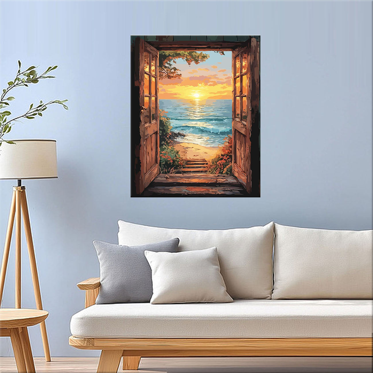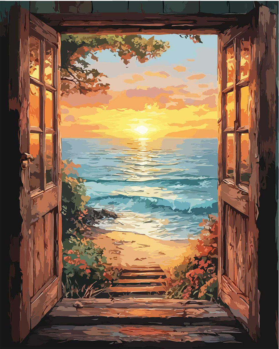 Meerblick durch die Tür - Malen nach Zahlen